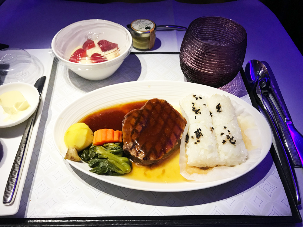 この食事をする前までは、”カタール航空は、なんて素晴らしいんだろう”って思っていました。しかし、食べてから大分気が変わりました。食事の味付け?味があいませんでした。前菜は、まずまずです(レモンが焼かれているのが意味わかりませんが)がメインのビーフのグリル、思わず残してしまいました。肉もパサパサ気味でしたし、和風ソースもダメでした。ビジネスクラスの食事もがっつり食べる系の方には少な目です。(足りない人は、新たに注文する事も可能だそうです。しかし、この味ではそう言う気持ちにもなれませんでした。)