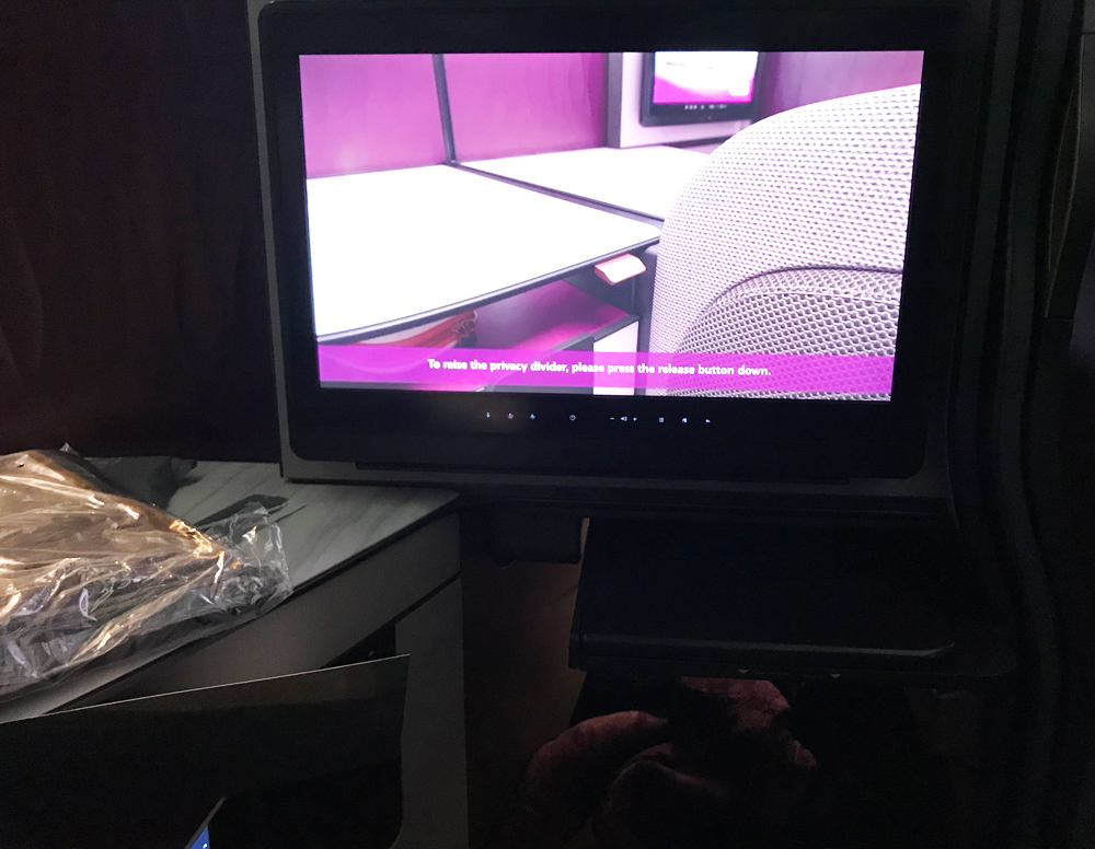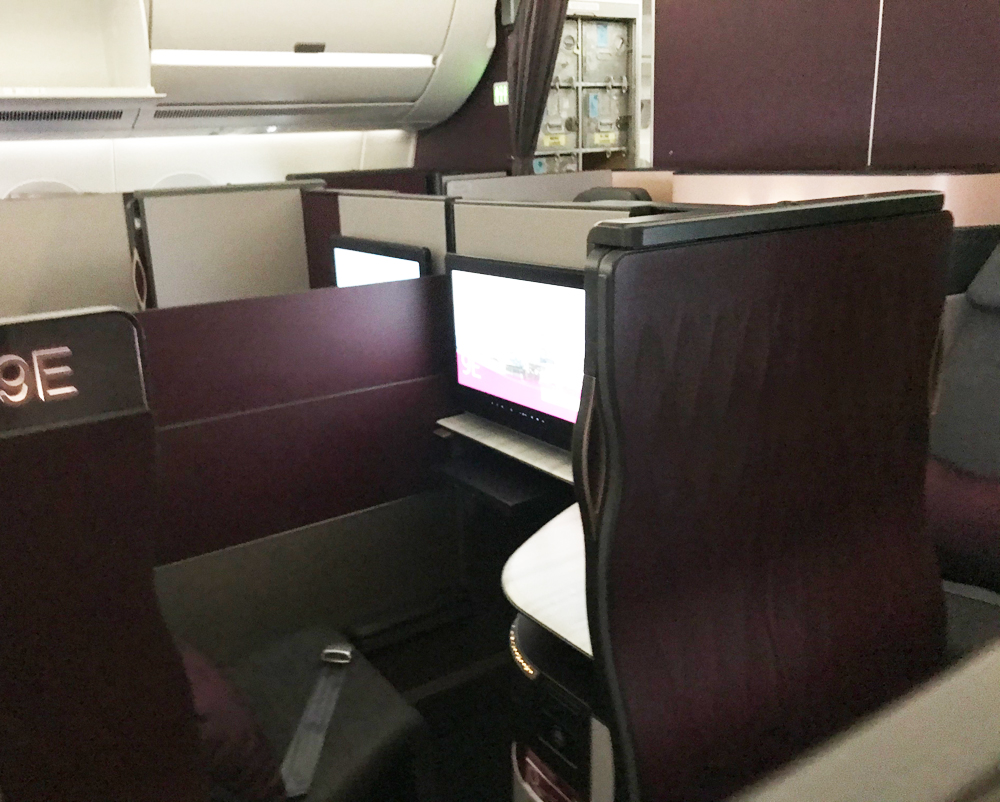 漸く、搭乗時間が来ました。来る時と同様にガラガラです。因みにエコノミークラスでも隣はいないので楽です。カタール航空のビジネスクラス初搭乗で期待が膨らみます。シートは実に大きいです。コンパートメントを超えたセミ個室でした。各シートにドアがあり開閉します。