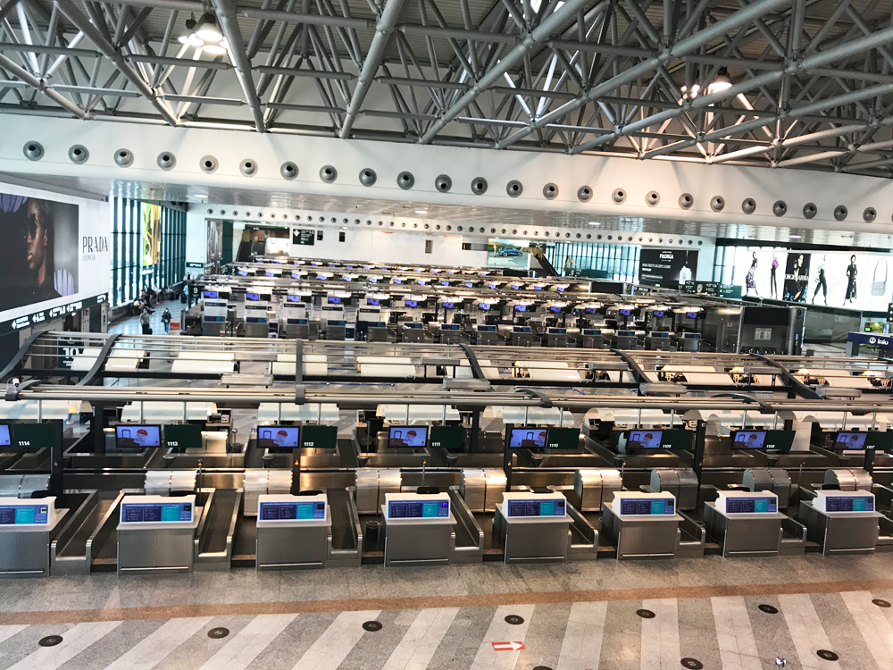 ミラノ マルペンサ空港はコロナの影響で予想通りガラガラです。この日は10月30日です。イタリアのコロナ感染は、1日約2000人前後でした。日本の7倍位の検査数があるのでこのレベルだと感染率は未だ低い方だと思います。